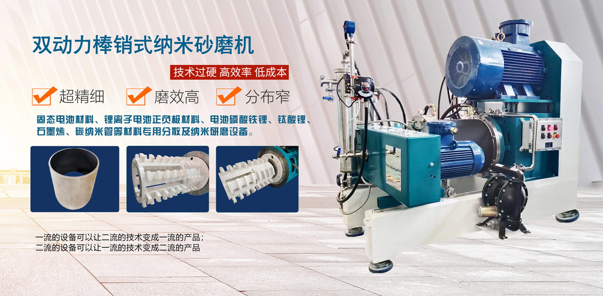 馳勒(上海)機械科技有限公司是是一家專注分散、研磨、攪拌、乳化及成套生產(chǎn)線解決方案的供應(yīng)商,公司總部位于東方明珠之城—上海。企業(yè)集研發(fā),生產(chǎn)、銷售、設(shè)計、施工為一體。主要產(chǎn)品有:直驅(qū)節(jié)能棒銷砂磨機、棒銷式臥式砂磨機、雙動力棒銷式納米砂磨機、渦輪納米砂磨機、立式納米砂磨機、實驗室納米砂磨機、行星攪拌機、三輥研磨機、反應(yīng)釜、高速分散機、真空均質(zhì)乳化機、成套生產(chǎn)線等產(chǎn)品 迄今為止,公司已為國內(nèi)輸出數(shù)萬臺合格設(shè)備,廣泛應(yīng)用于磷酸鐵鋰、磷酸錳鐵鋰、鋰電三元高鎳、導(dǎo)電劑、石墨烯復(fù)合漿料、隔膜、電池涂覆、硅碳負極、電池材料、導(dǎo)電漿料、CMP拋光液、5G陶瓷粉體材料、數(shù)碼墨水、涂料、油墨、樹脂、特膠例5水、光伏產(chǎn)業(yè)的鋁銀漿、農(nóng)藥、潤滑油、助劑、陶瓷/玻璃、電子漿料、納米材料、油漆、色漿、潤滑脂、醫(yī)藥、顏料/燃料、化妝品、食品、膠黏劑/密封劑、礦石/礦物/金屬、熒光增白劑、纖維素/紙漿、微電子及半導(dǎo)體、農(nóng)用化學(xué)品、生物科學(xué)、科研/教學(xué)等高端領(lǐng)域,并取得了廣大客戶的一致好評。 馳勒機械一直深耕于濕法研磨行業(yè),深知只有專一才能專業(yè)的道理,力求做精做專,秉承為客戶提供專業(yè)的精細研磨解決方案,推薦合適的納米級、亞微米級研磨設(shè)備。為您創(chuàng)造更多、更高的價值。